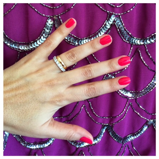 As unhas, muitas perguntas recebi acerca da cor do verniz. O verniz é da Risqué, chama-se "Amarração de Amor", comprei no Brasil, nunca vi por cá. Por cima, claro, o imperdível top coat da MAC.