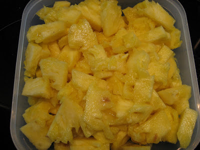 2. Arranjar o abacaxi (eis um trabalho de paciência) cortado em triângulos e sem as partes fibrosas.