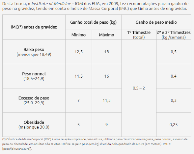 "400 grs. por semana???". Contas feitas isto indicava um aumento mínimo que rondava os 13/14Kg, mas depois vi que isto se aplica a uma realidade americana e não uma realidade europeia. Por cá a recomendação anda por volta dos 9/12Kg.